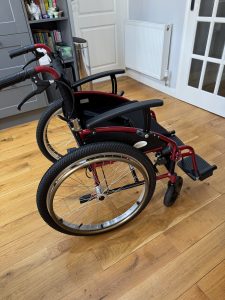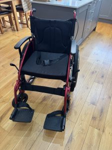 Wheelchair with angle-adjustable seat, height adjustable push handles, swivelling leg rests, puncture proof drive wheels. originally purchased in May 2025 for £850 and has had very little use. Asking price £450. Located at Walkergate Hospital. Please contact Jane, Tel number 07798566360